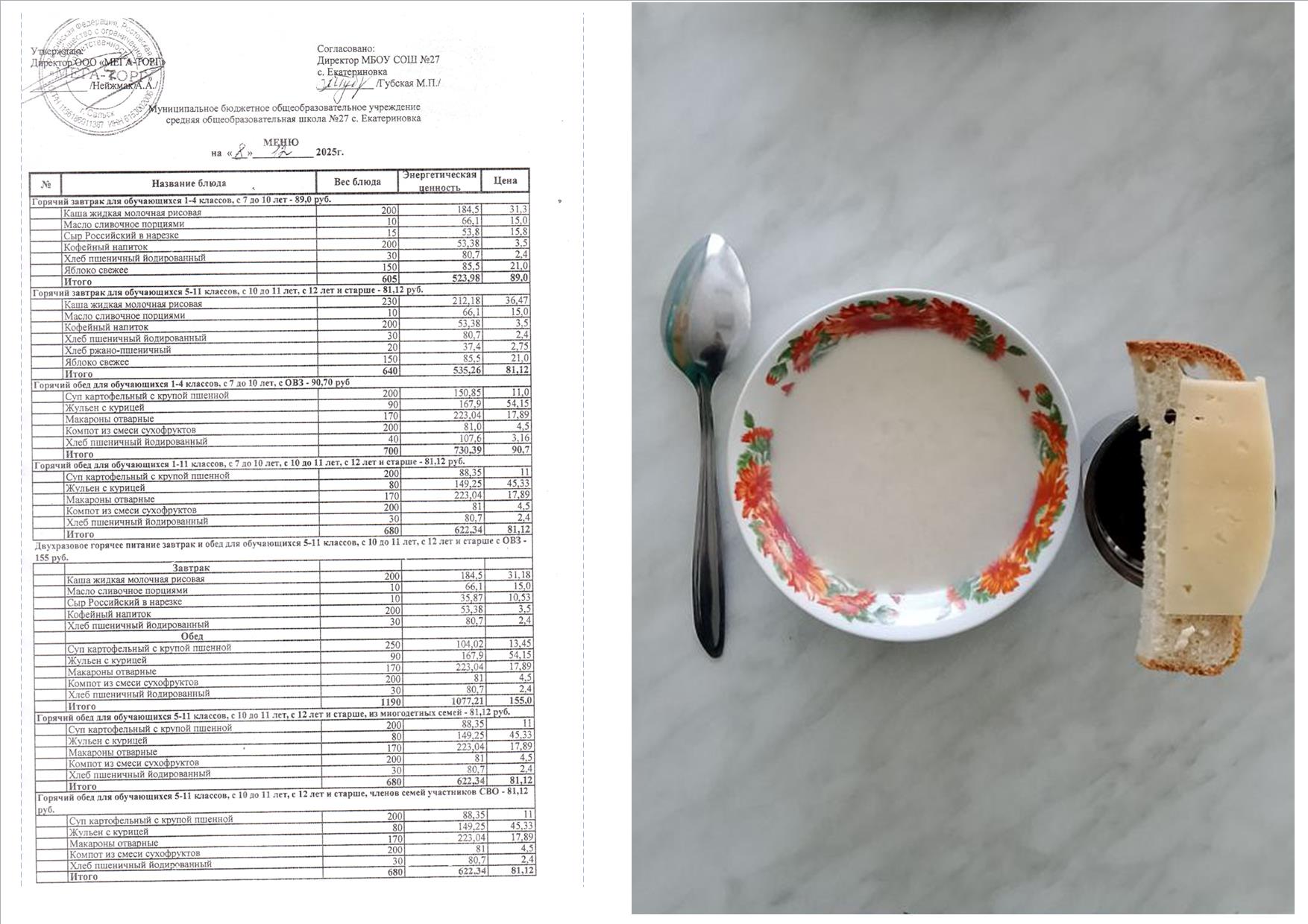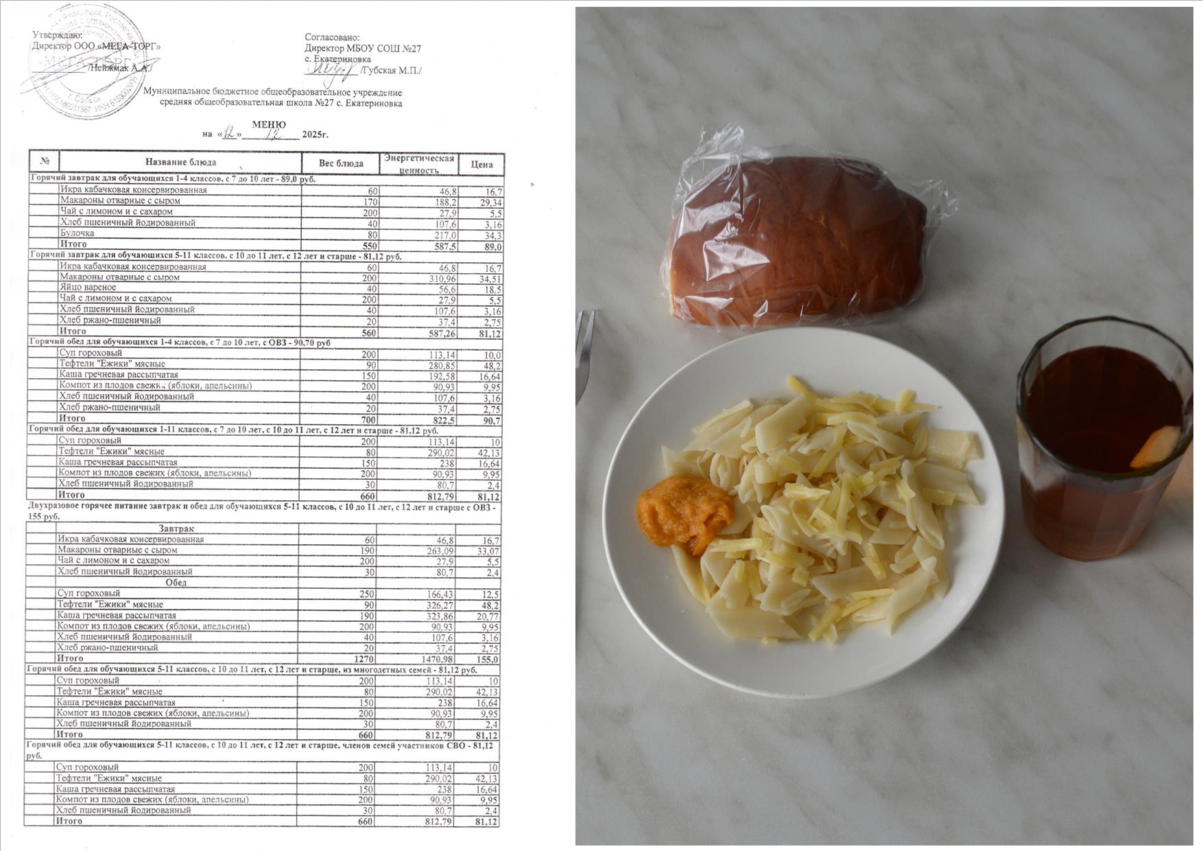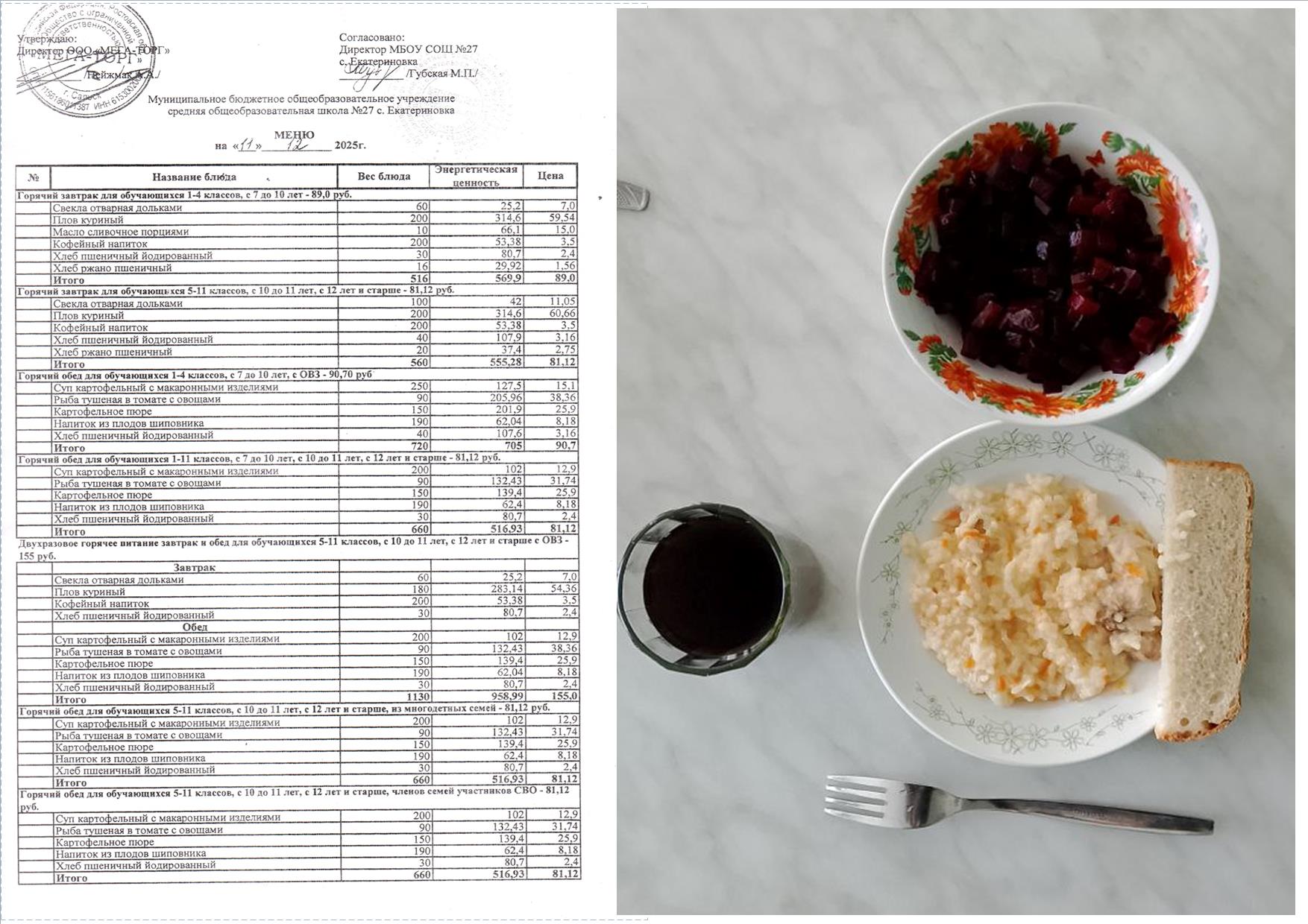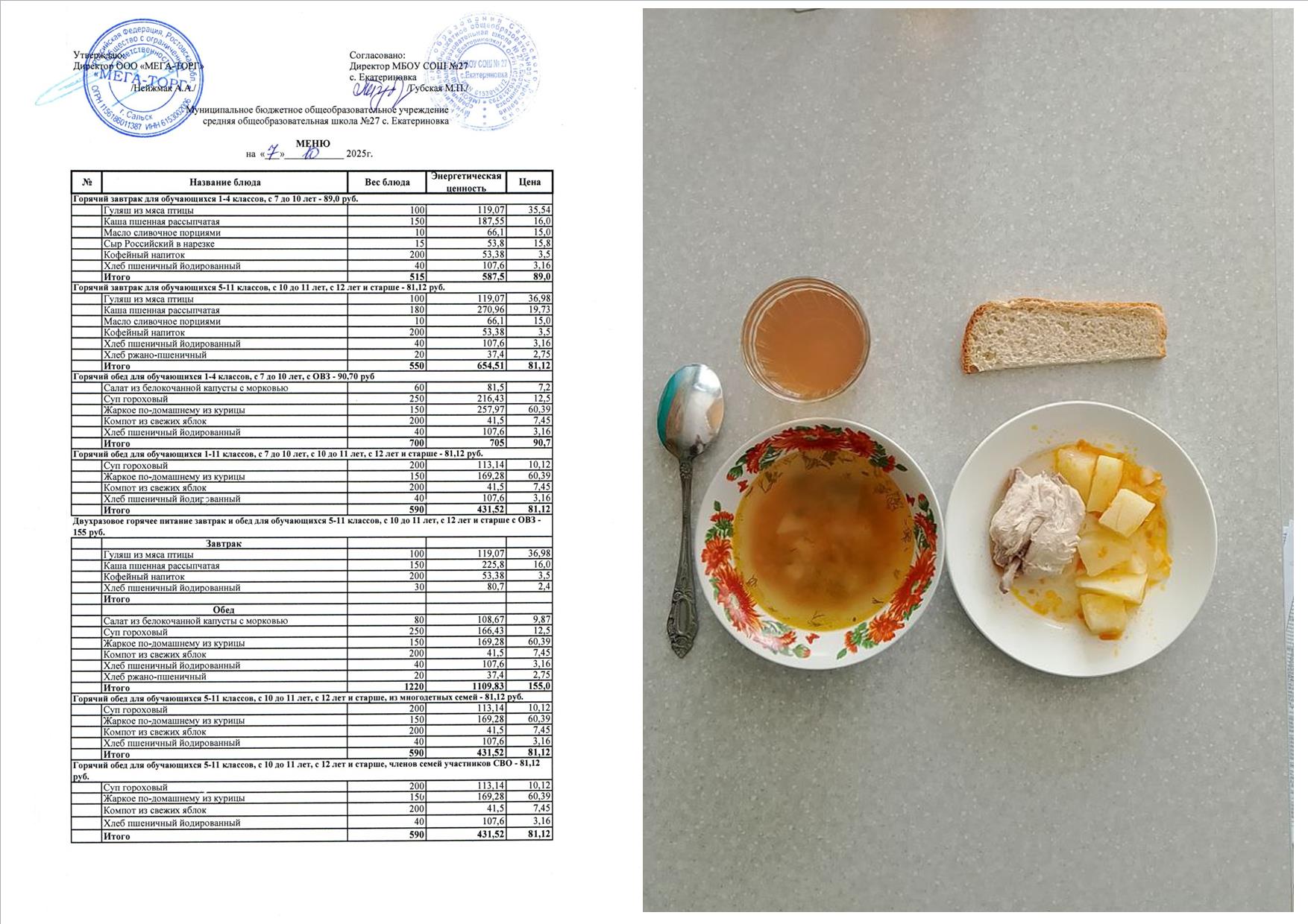 Потребности в организации диетического меню в МБОУ СОШ № 27 с. Екатериновка нет. Диетического меню нет.
